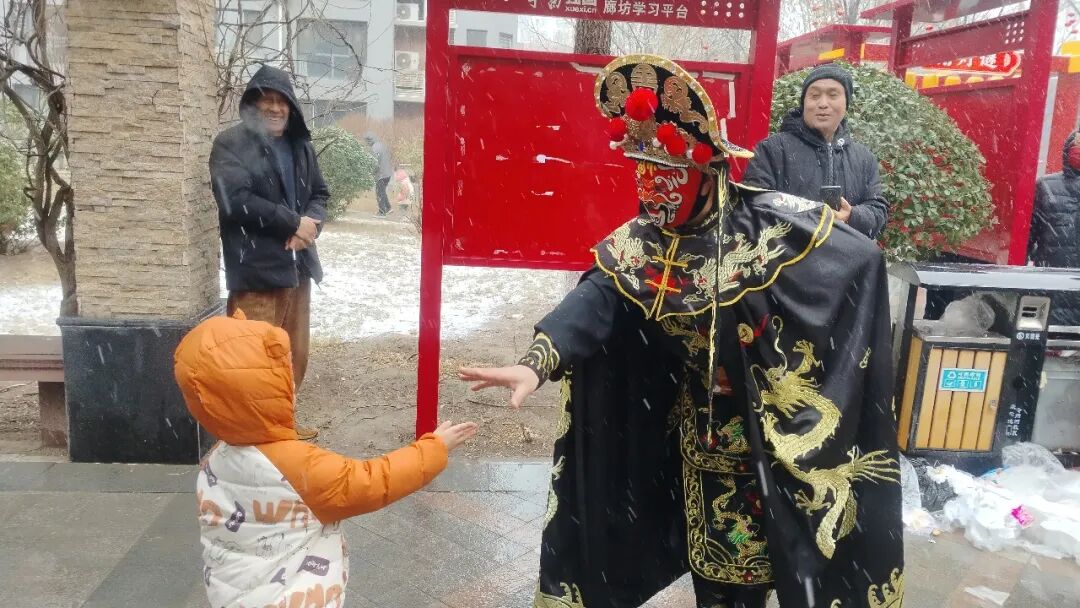 川剧变脸绝活惊艳亮相,艺人走下舞台与居民近距离互动,娴熟的技艺、传神的表演,让孩子们在雪地里欢呼雀跃;趣味猜灯谜环节,一条条灯谜妙趣横生,大家或驻足沉思、或结伴探讨、或踊跃抢答,欢声笑语与雪花共舞,尽显传统民俗魅力。